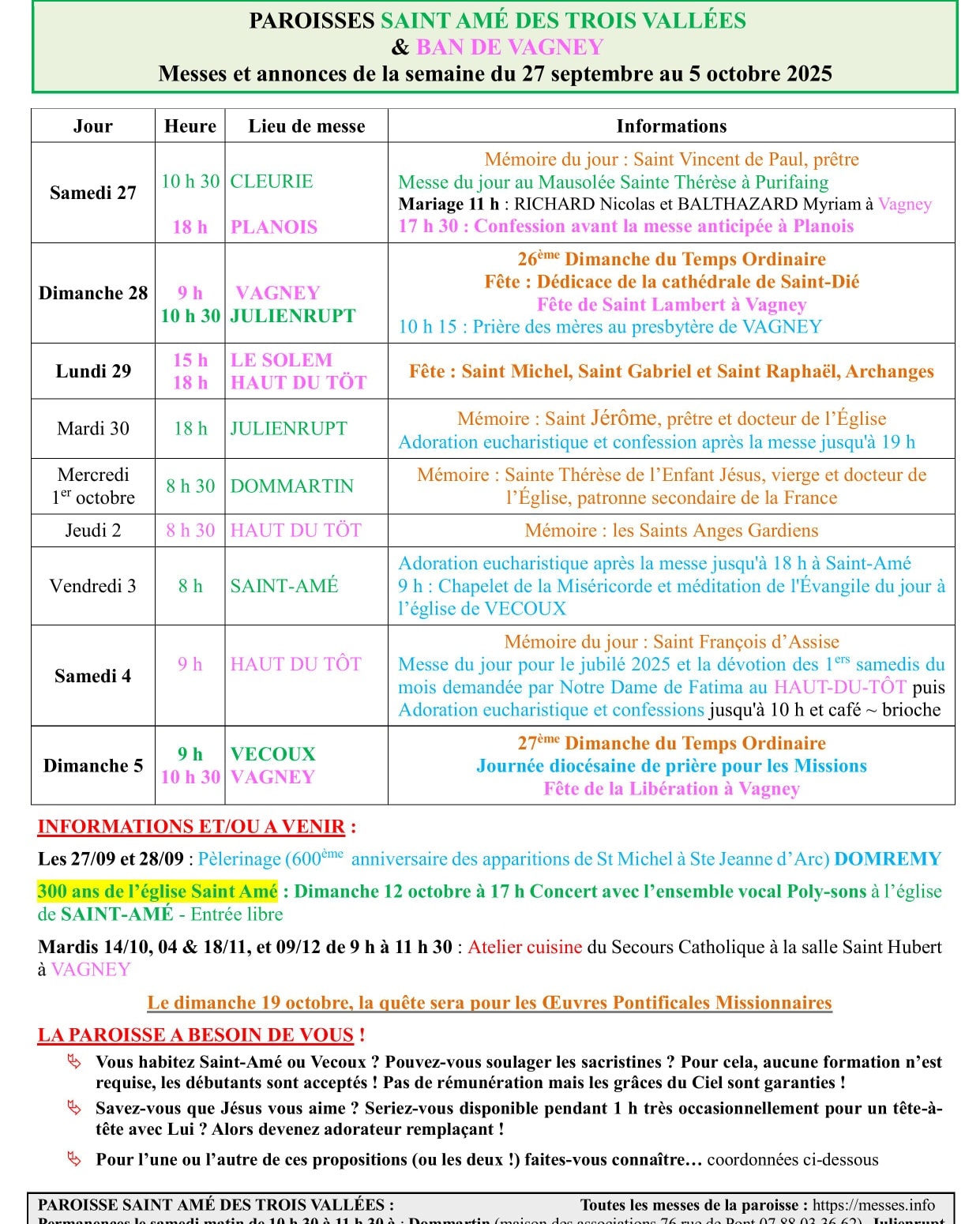 Horaires de messes
