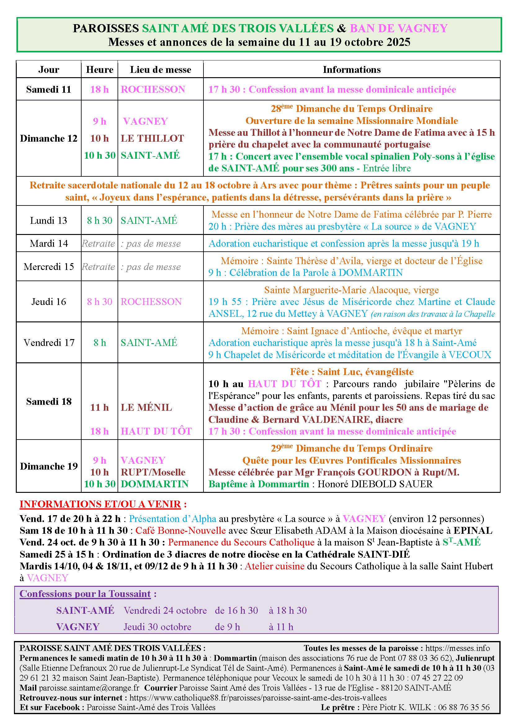 Dimanche 19 octobre - 10:30 Eglise Saint-Laurent de Dommartin-les-Remiremont