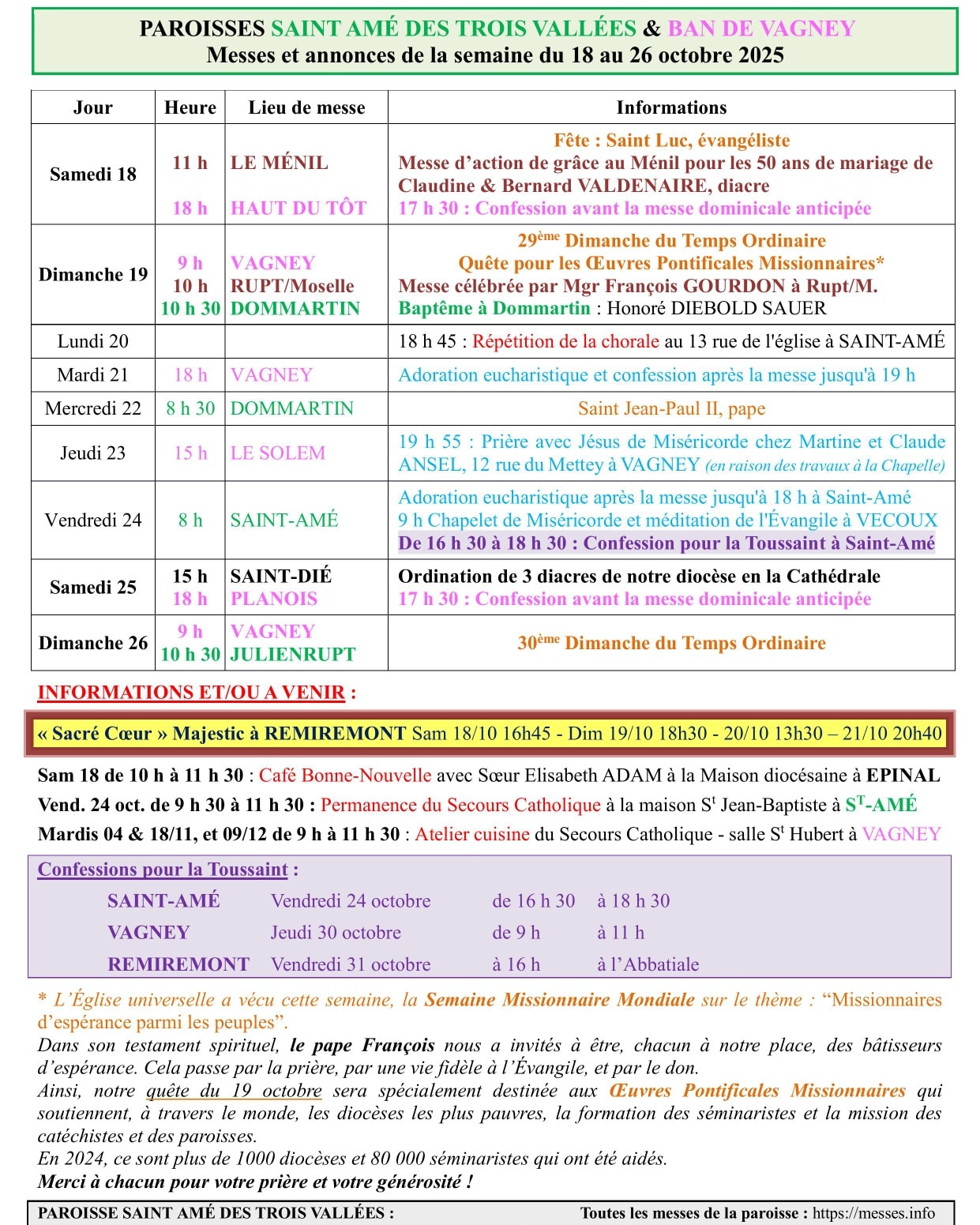 ANNONCES DE LA SEMAINE 43