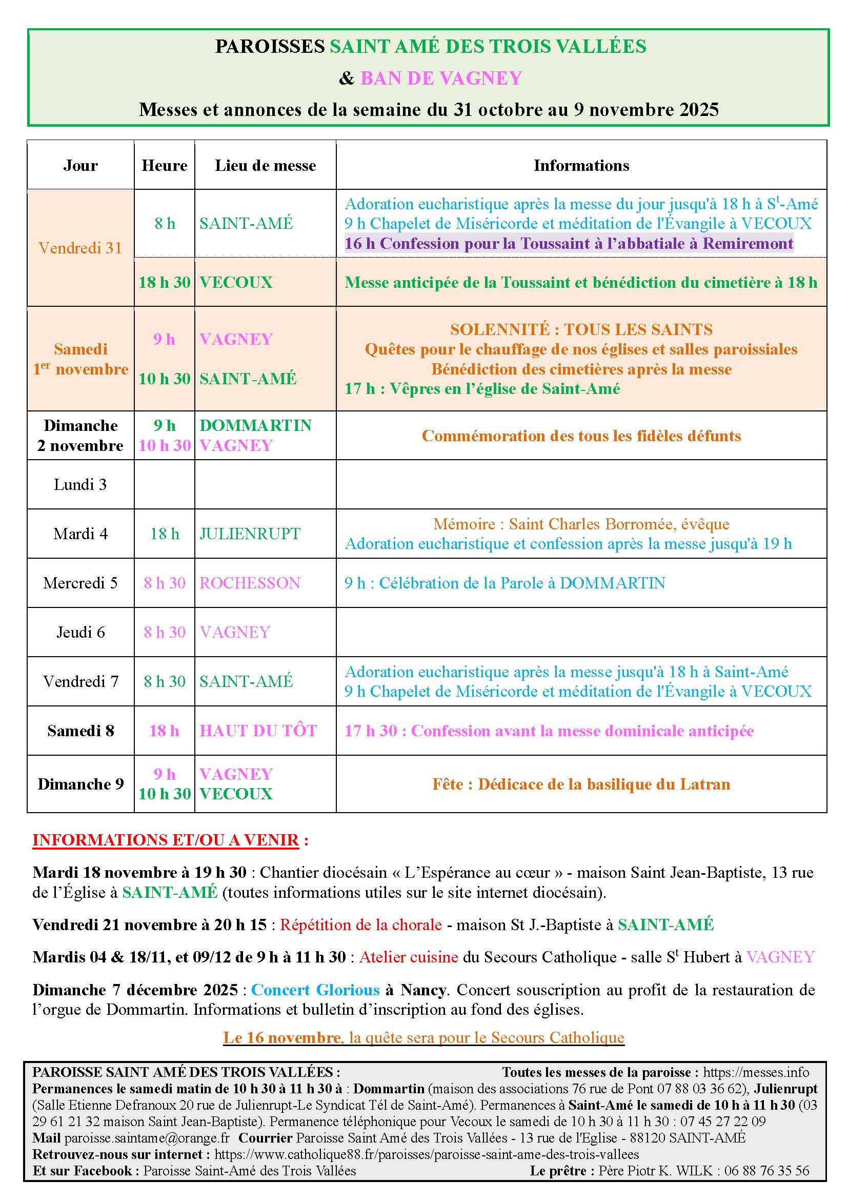 | Dimanche 9 novembre - 10:30 | Eglise Saint-Louis de Vecoux | |