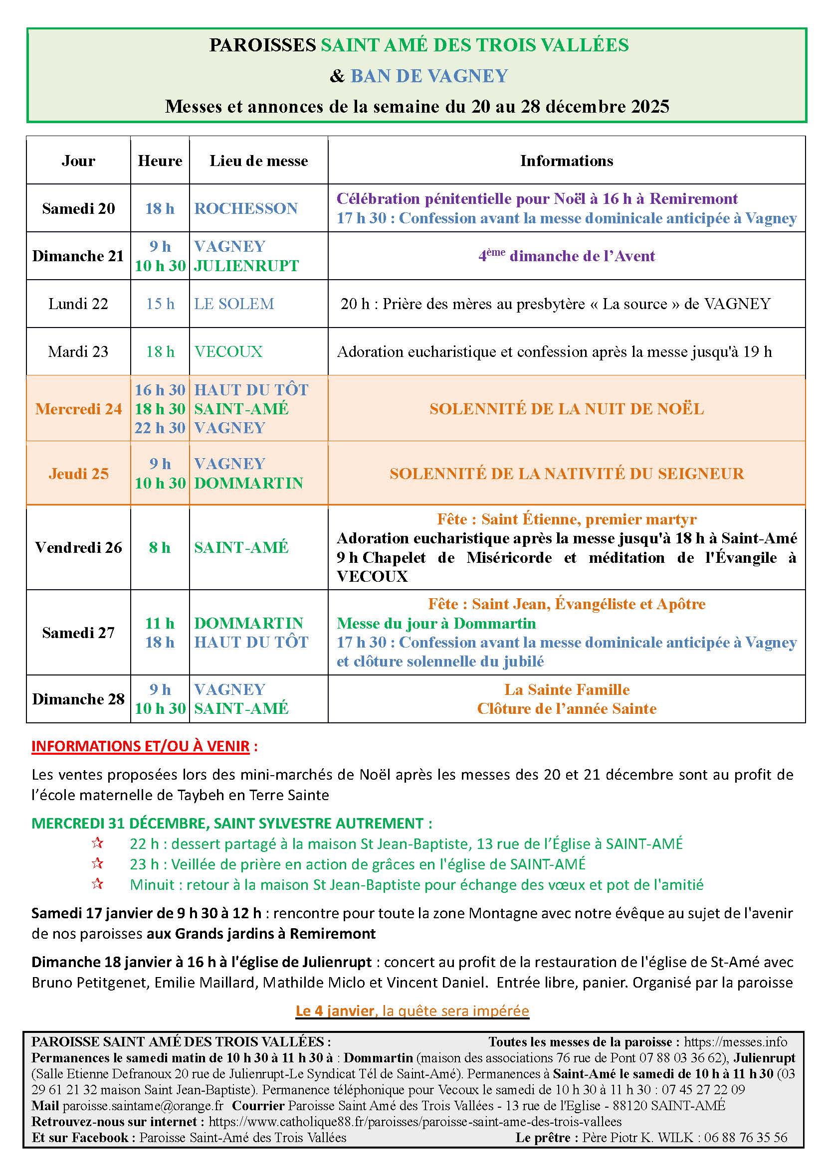 Jeudi 25 décembre - 10:30 Eglise Saint-Laurent de Dommartin-les-Remiremont